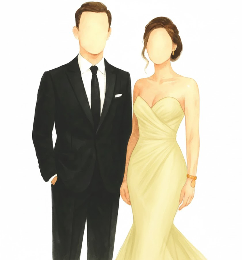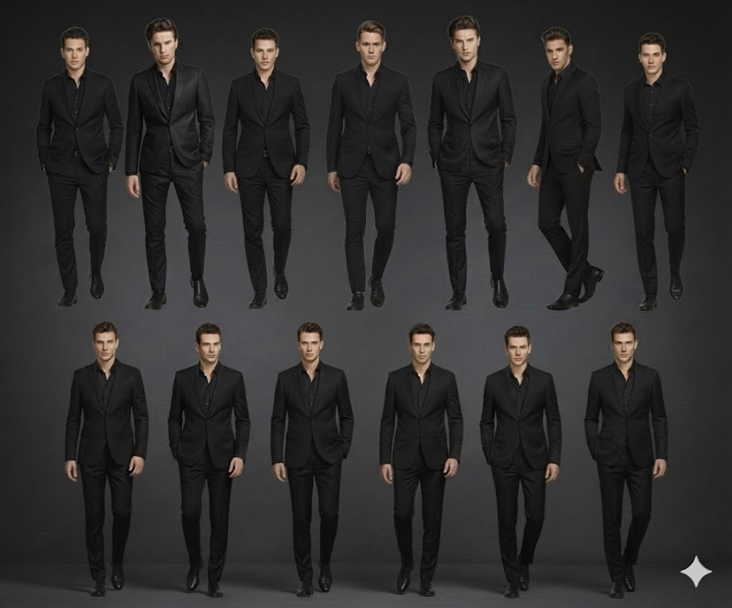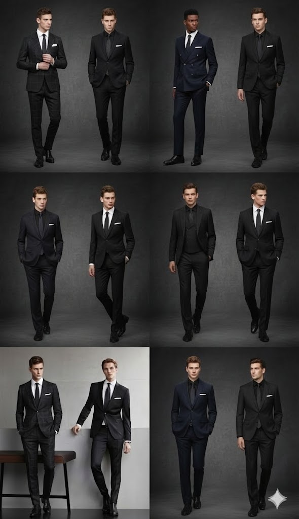 Hombres: Traje formal y corbata.